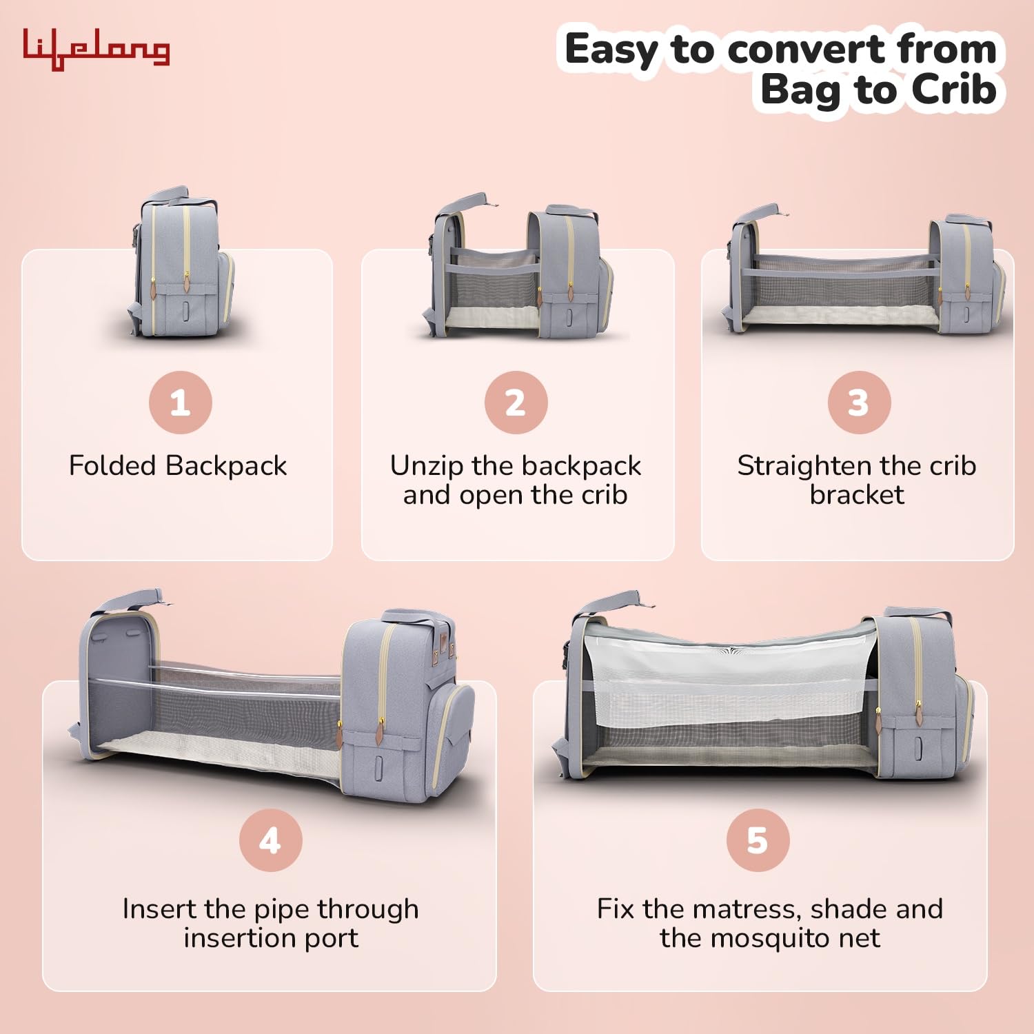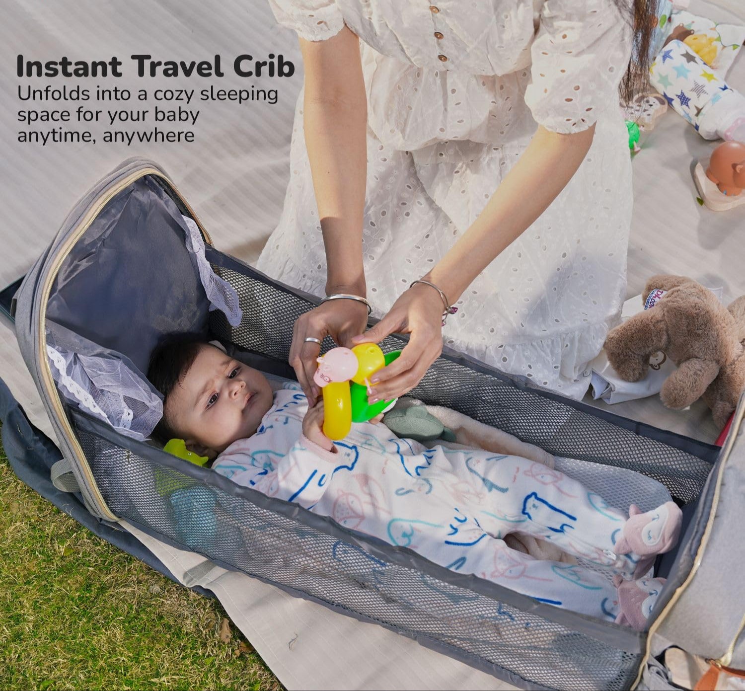 - 🍼 7-in-1 Functionality – Backpack, diaper bag, foldable crib, changing station & more